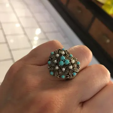 アクセサリーは、先日京都のパスザバトンで購入したターコイズのハートのリングを合わせて。