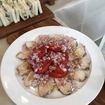 鶏むね肉で作ったしっとり鶏ハムのトマト添え。