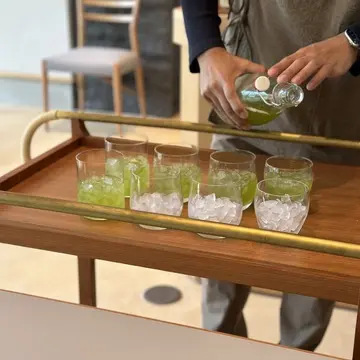 丁寧に抽出された冷茶。綺麗なグリーンですね!