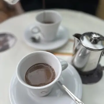 本場のクロワッサンに、ホットショコラ。