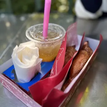 チキンレッグもオススメされたので、スパークリングタピオカティーと一緒にいただきました。