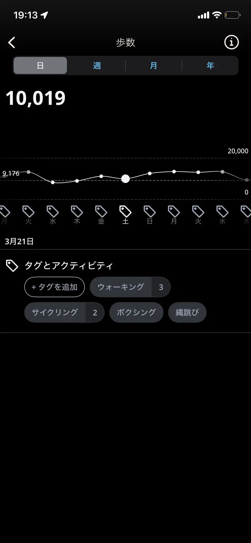 こちらは起きている間の心拍数、1日の歩数の記録。