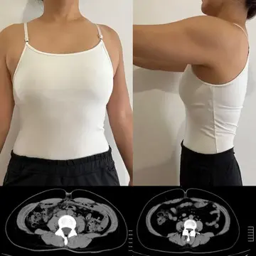 以下が、齋藤先生が〈齋藤式満腹やせメソッド〉を行う前と、行って1カ月たった頃のCTスキャンの比較画像。
