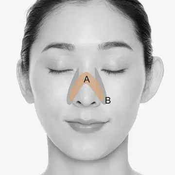 鼻の中央や眉頭の筋肉の動きをよくして血行促進