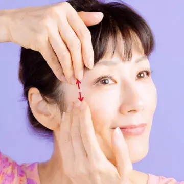 「気持ちよくありませんか? 眉のまわりは、スマホやパソコンの操作や表情癖などで、思いのほかこっています。こうしたこりや疲れを、毎日こまめに解消していくことが大切です。