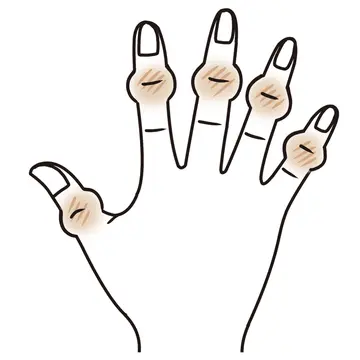 「へバーデン結節やブシャール結節の場合は、テーピングをすることで変形の進行を抑えられます。市販のサージカルテープで症状のある関節の上下3cm前後をつけ根側からぐるぐる巻けばOK。きつく巻くと鬱血(うっけつ)するのでゆるめに、指先を少し残して巻くのがポイントです」