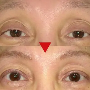 実際はまぶたが瞳孔にかかるほど落ちてきているのに、おでこや眉の力で目を開けているので、パッと見た目にはわからない「隠れ眼瞼下垂」でした。