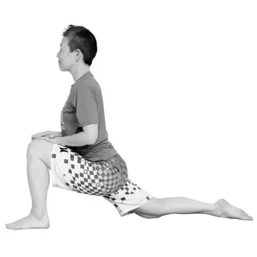 あおむけになり、両膝を立て、息を吐きながら両膝を抱える。左右の膝を離し、胴体の外側に膝がくるようにし、さらに息を大きく吐く。