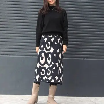 柄が大きいお陰で気になるお腹も意外とスッキリ見える気がします。後ろ姿もお尻の肉感が分からなくて快適です!