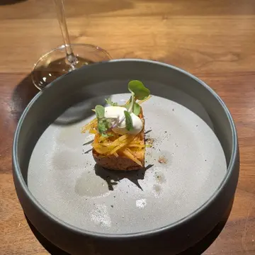 海老が苦手な私の前菜は、【人参とクミンのケーキ カルダモンとレモンのクリーム】