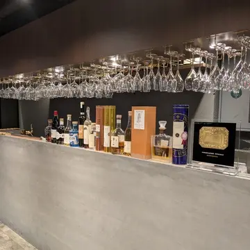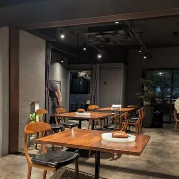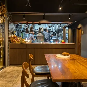 グレーとブラウン基調のスタイリッシュな店内が、とても落ち着くライティングでお洒落な雰囲気に…