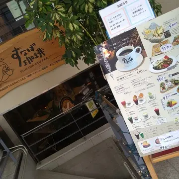 駅前のすなば珈琲の看板を記念撮影