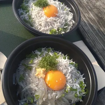 青空の下でいただくシラス丼。