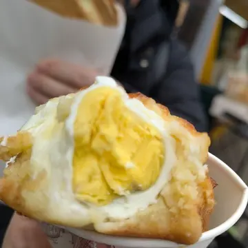 甘いパン生地の中に塩味の卵が丸々1個入っていて