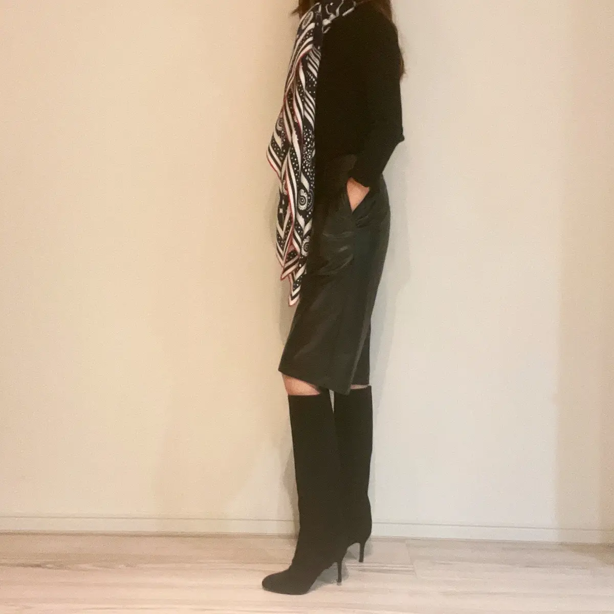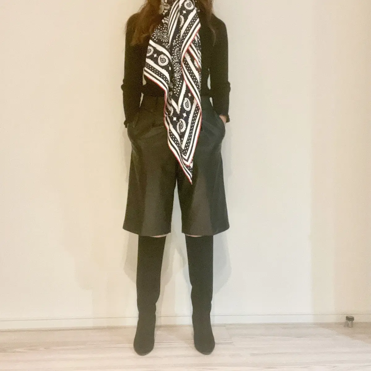 最近重宝しているストールとキルティングバケットハットです。