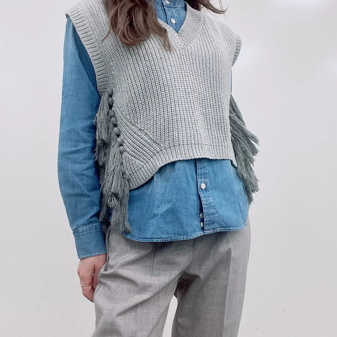 店頭にもピンク、グリーン、パープルと目に留まるきれい色のお洋服が沢山並んでいます。コーディネートに程よく取り入れ、着映えたいです。
