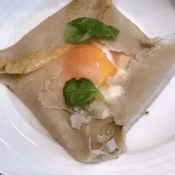 卵と、チーズ、ハムのガレットが焼けました。