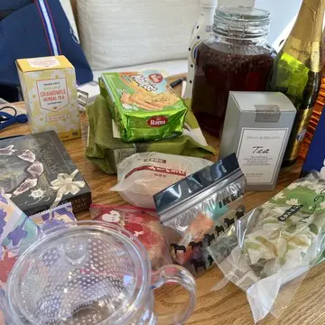 持ち寄ったお酒にお茶、お菓子たち