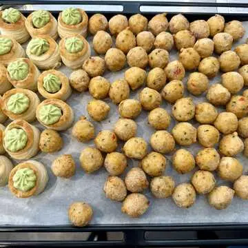 エスカルゴのパイ包み、タラのアクラもオーブンに入れていきます。