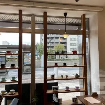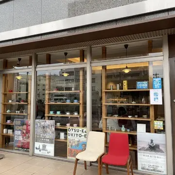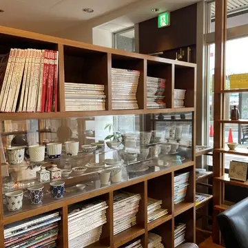 器の展示と本のあふれるカフェでした。