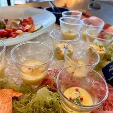 前菜やパン、デザートの並ぶビュッフェ台へ。