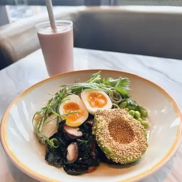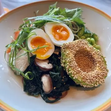 茶そば、セサミアボカドのサラダボウルで