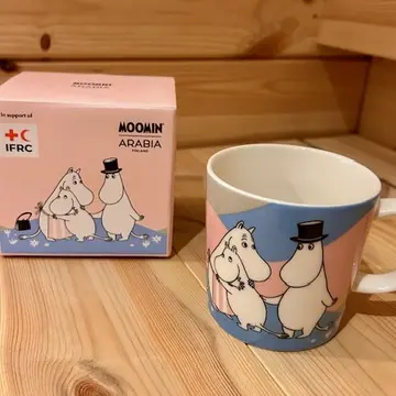 マグカップには、ムーミンとムーミンママが抱き合い、