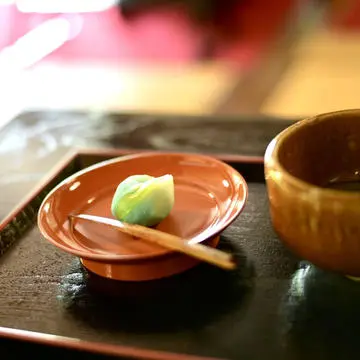 浄明寺境内のお茶室喜泉庵で和菓子とお抹茶をいただいてきました。