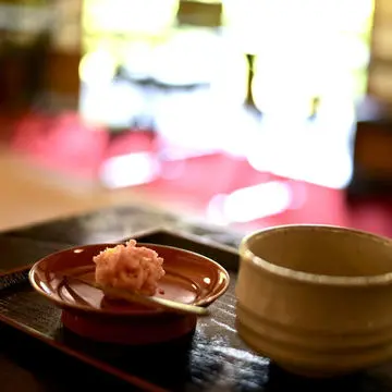 出てきたお抹茶セットは、私に野の春という可愛いピンクの生菓子で