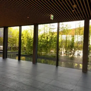 想像していた通り、迫力のあるエントランスと内部の木の使い方は彼ならではのもので、とても洗練された空間でした。