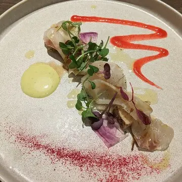 愛媛県産 真鯛のカルパッチョ ゼルコバ スタイル 真鯛 の下には たけのこが。