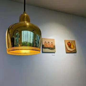新丸ビル4階に誕生したばかりのこちらのお店には、アアルトが手がけたオリジナルの椅子や代表作、真鍮のペンダントライト「ゴールデンベル」がたくさん吊るされていて、空間全体がまるで1つのアート作品のようでした。