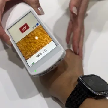 手背のキメを美容液塗る前と塗った後をチェックしてくれます。