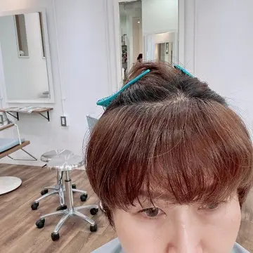 カラーは、髪質的にあまり強くないので、白髪染めはあえて使わない方が良いということで、おしゃれ染でアッシュ系、ミルティーカラーよりちょいと暗めになるように今回は色をのせるだけに。