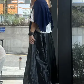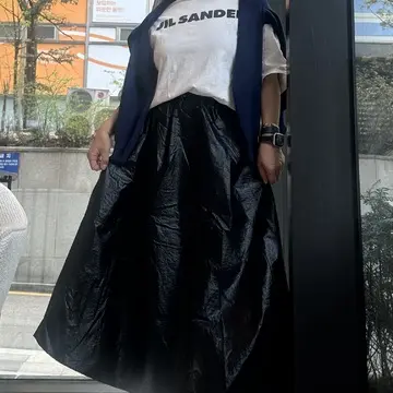 メタリックの黒のスカートは撥水性で、なんといっても軽い!そしてシワにならずコンパクトにたためてしまう万能なアイテムです。