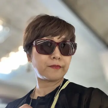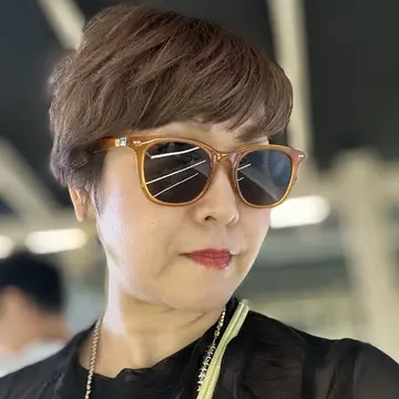 シャープなキャットアイ型が特徴のサングラス。エッジの効いたシルエットで、都会的かつモードな印象✨