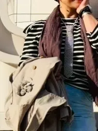 首元はブラウンのストールで春仕様にしていたけれど、