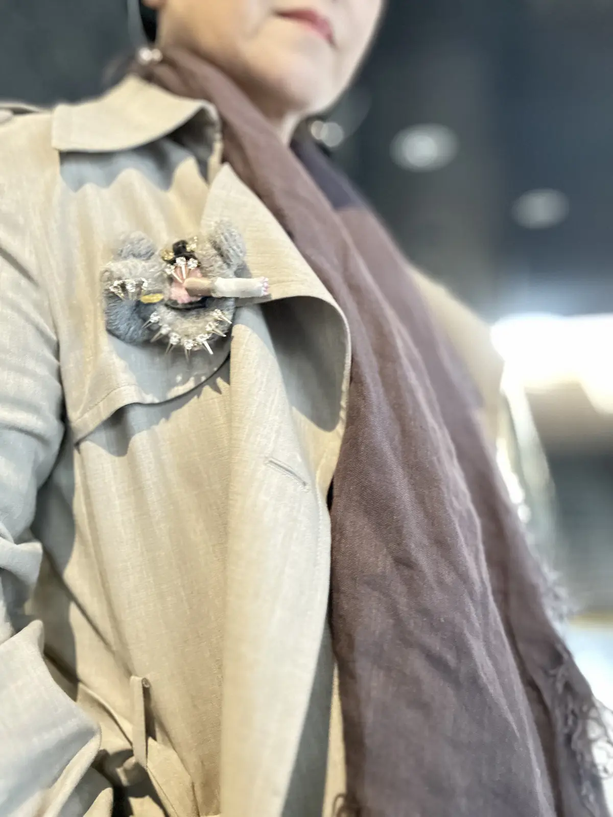 「紫煙を纏う姿だけは一丁前」なちょい悪ベアーのブローチお気に入りで今回の呑兵衛会にもお供してもらいました。
