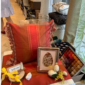 テーブルコーデと、今回は素敵なカーテン生地で、ミニクッションを作成するお見本