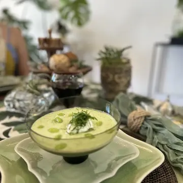 今年の夏はアマゾネス🌿グリーンに🍋がアクセントなテーブルコーデがまたまたリゾートホテルに来たようで、いつもおもてなしに感服✨