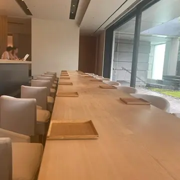 人が多い表参道交差点のすぐ近くなのに、ひっそりモダンな和庭園を望めるガラス張りのお店