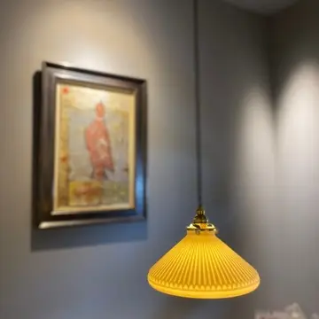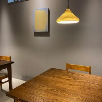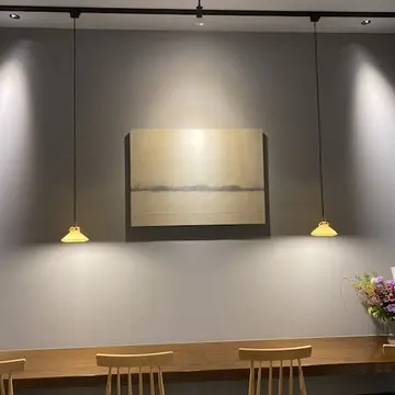 モダンな空間に飾られたアートと、ペンダントライトがまた良い風合い