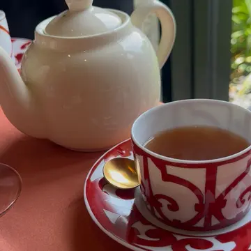 コチラではドイツの最高級品質なロンネフェルトの紅茶が楽しめると聞いて数ある中から、"アーユルヴェーダハーブ&ジンジャー"や"アールグレイ"の香り豊かな紅茶をHERMESのティーソーサーでまた頂くと格別ですね⭐︎