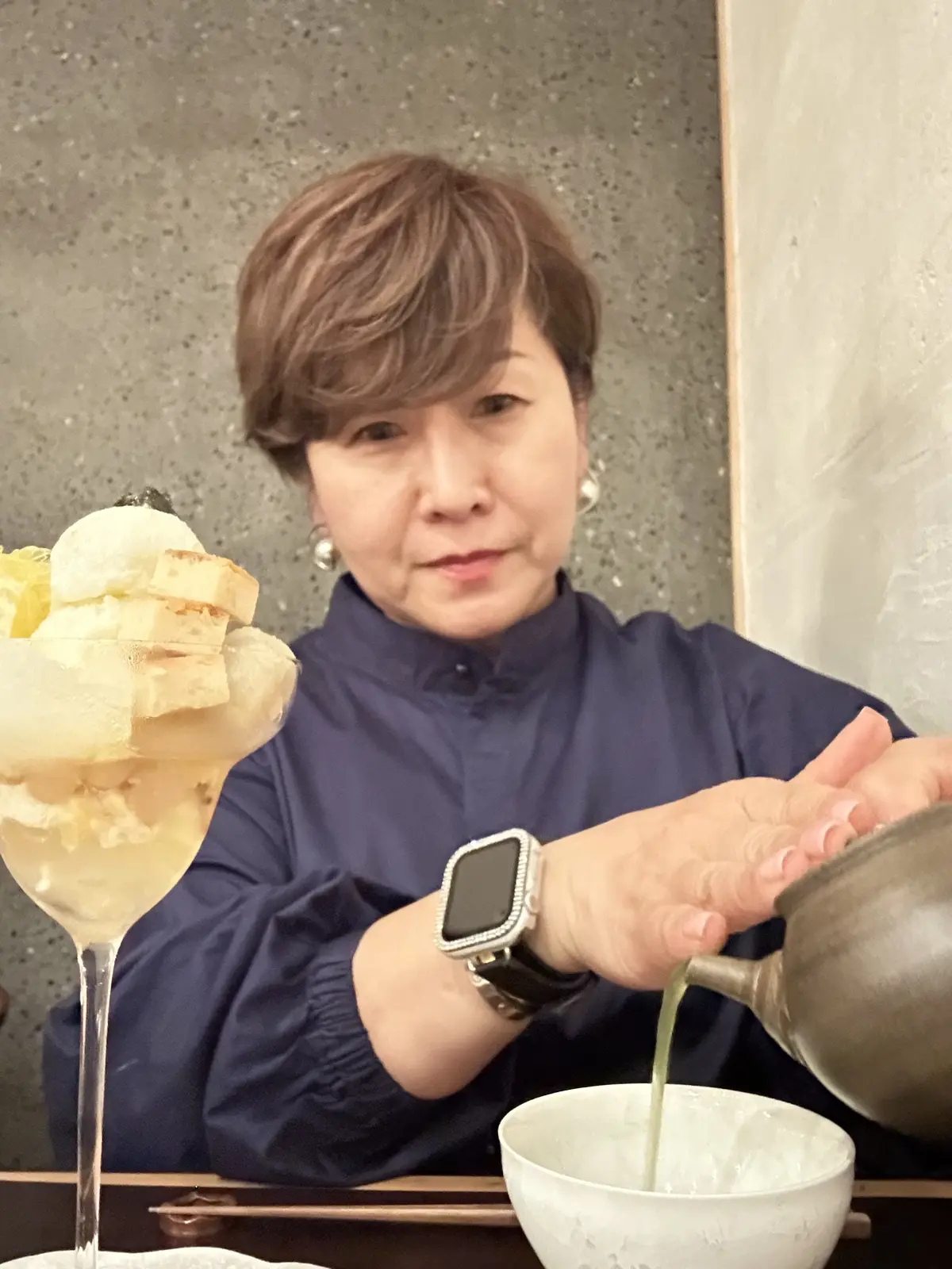 低温の白湯を入れて飲む緑茶は甘さ!パフェとマッチして白湯を頂けるので、"3煎"も飲んじゃいました。五臓六腑に行き渡る量を流し込み美味しゅうございました。