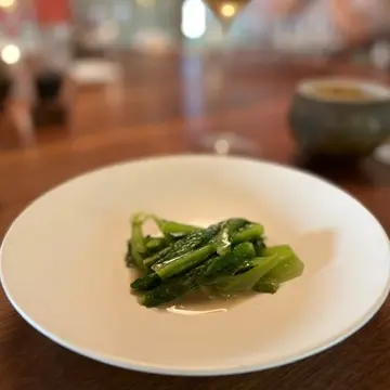 ♡A菜 こちらは日本のお店ではなかなかお見かけしないお野菜。シャキシャキ感が👍こちらも味変で万能タレで頂くのも良し!