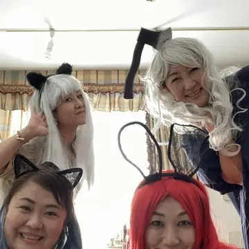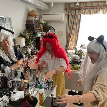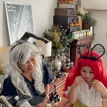 ウィッグを被ってハロウィン仕様のカチューシャをつけてお料理の準備もしましたよ(笑)
