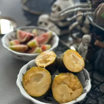 ねっとりと甘いクリーム状で、アボカドやバナナ、マンゴー、柿をミックスしたような感じでしょうか?