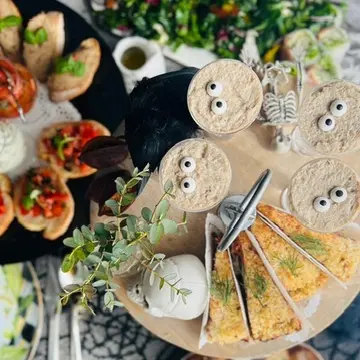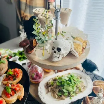 それぞれ持って来たフードをテーブルに盛り付けを皆んなとワイワイしながらするのも楽しいですね。