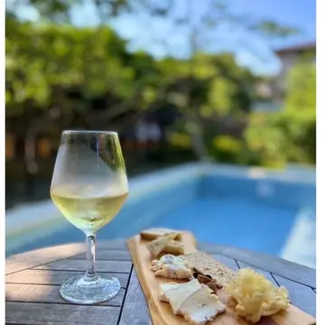 なんとこちらパティオにプール🛟 チョイスしたチーズはどれも美味🧀
