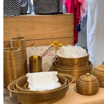 そして、すごく気になったインテリア小物と、ジュエリーは、ブラジル中部のサバンナ地帯の限られた湿原に自生する黄金の草、カッピンダラートという細長い草が乾くとこの黄金色に輝くそうです。